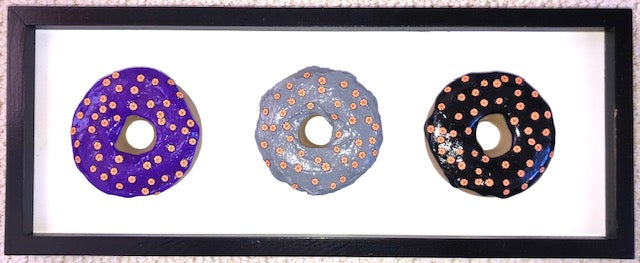 3 Large Basketball Donuts in 19 3/4x 7 3/4 Black Frame - Purple, Grey, Black