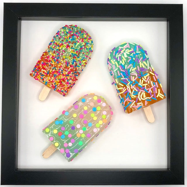 3 Popsicles in 8x8 Shadow Box Frame - Full Sprinkles Collection
