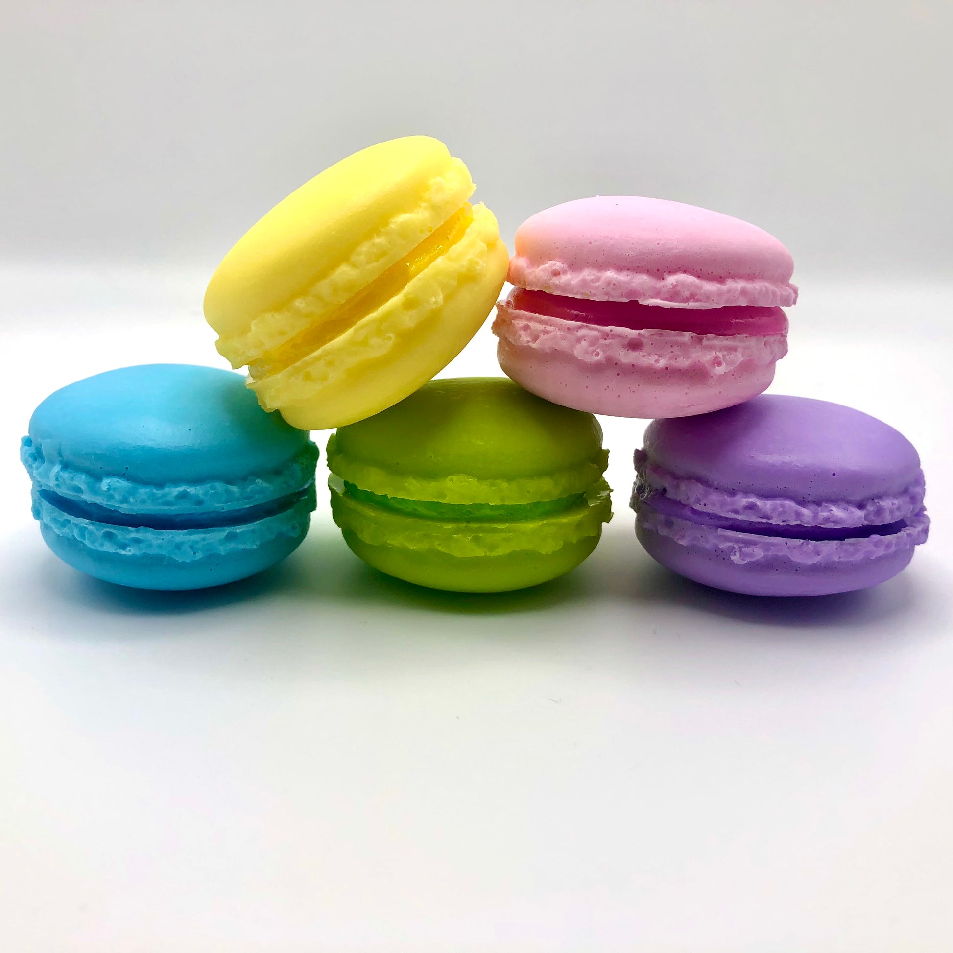Set of 5 large macarons to please the amour in your life. You get 5 different colors, randomly selected.