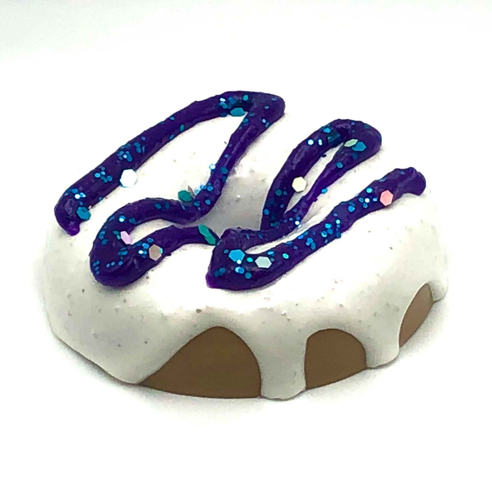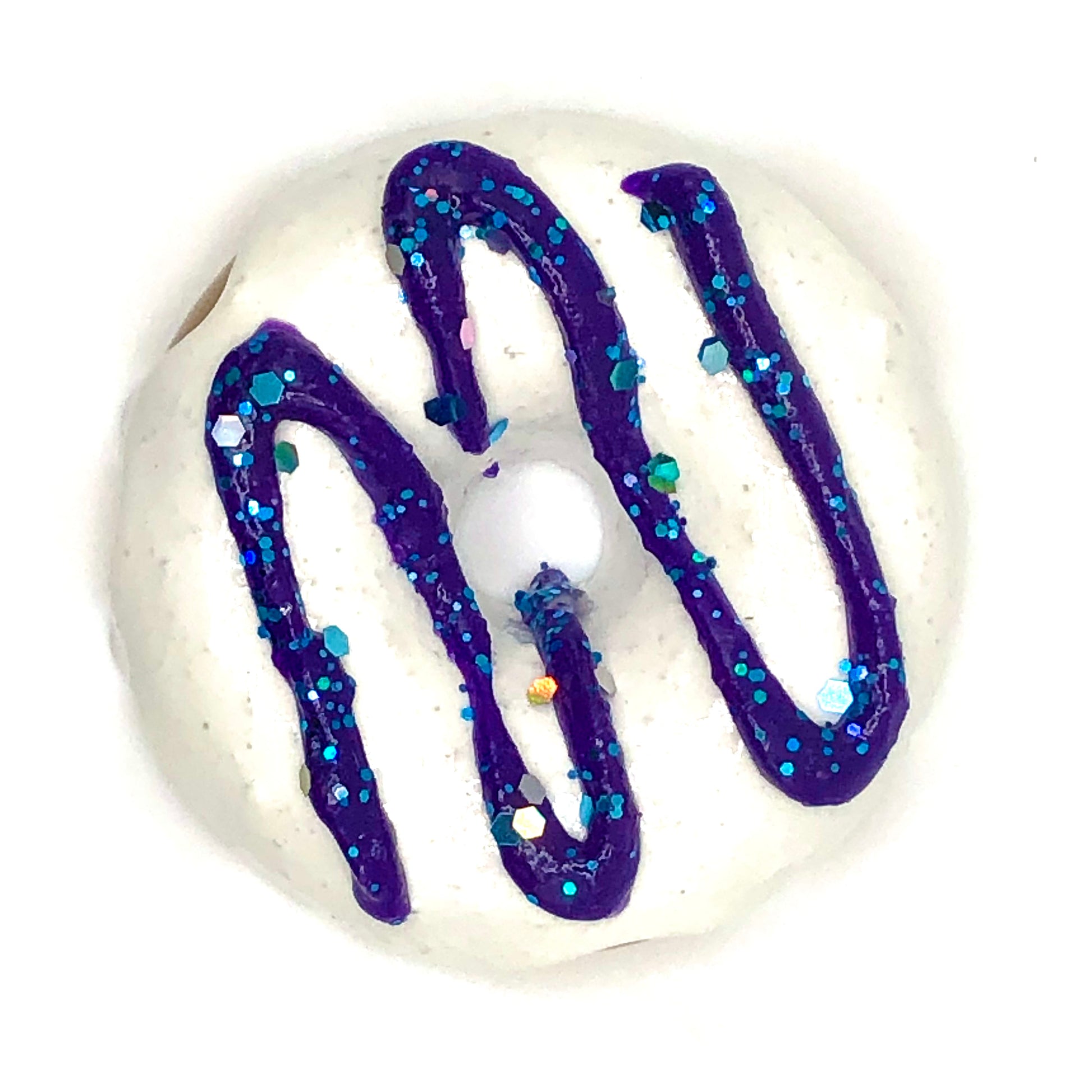 White Frosting Resin MINI Donut with Glitter and Dark Blue Drizzle