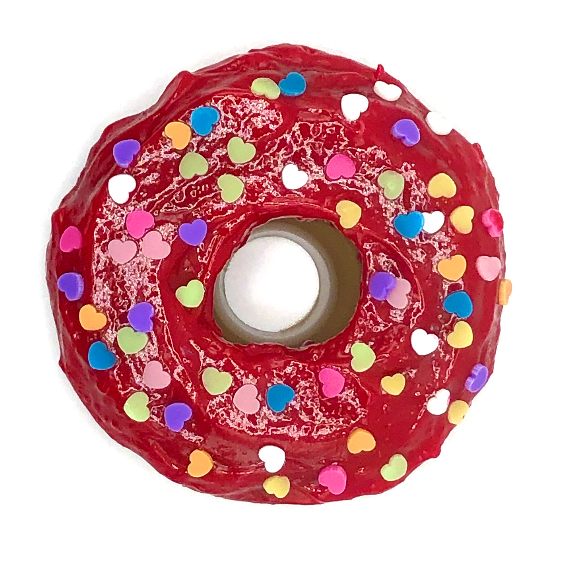 Red Frosting Resin MINI Donut with Pastel Hearts Sprinkles