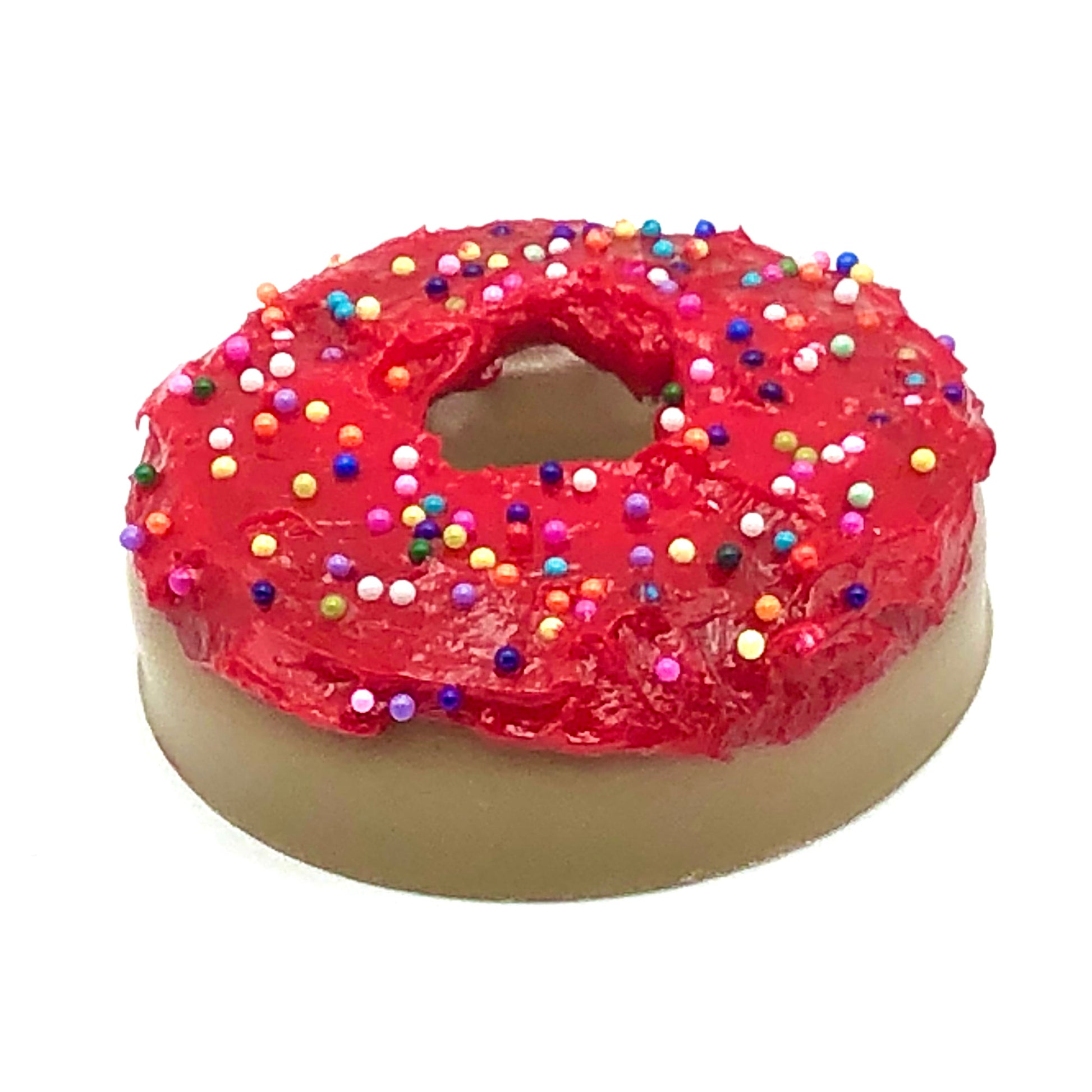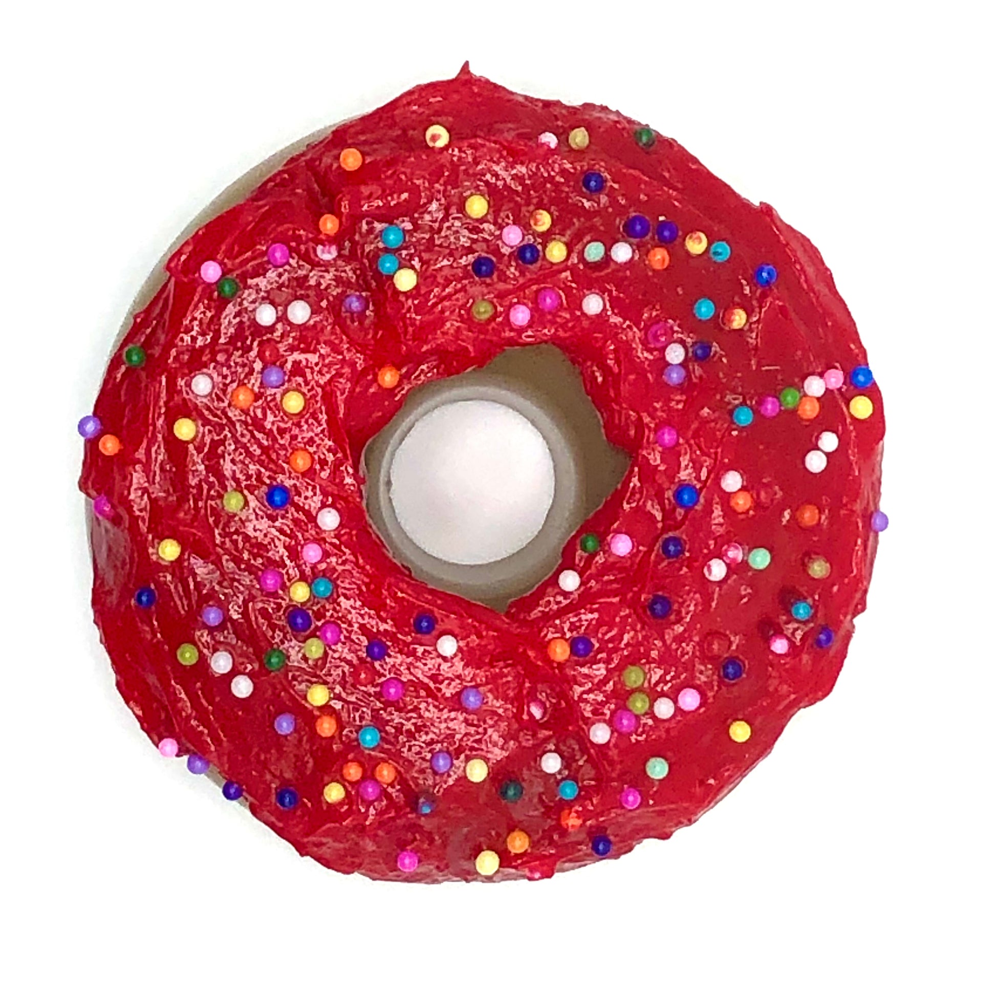 Red Frosting Resin MINI Donut with Rainbow Nonpareil Sprinkles