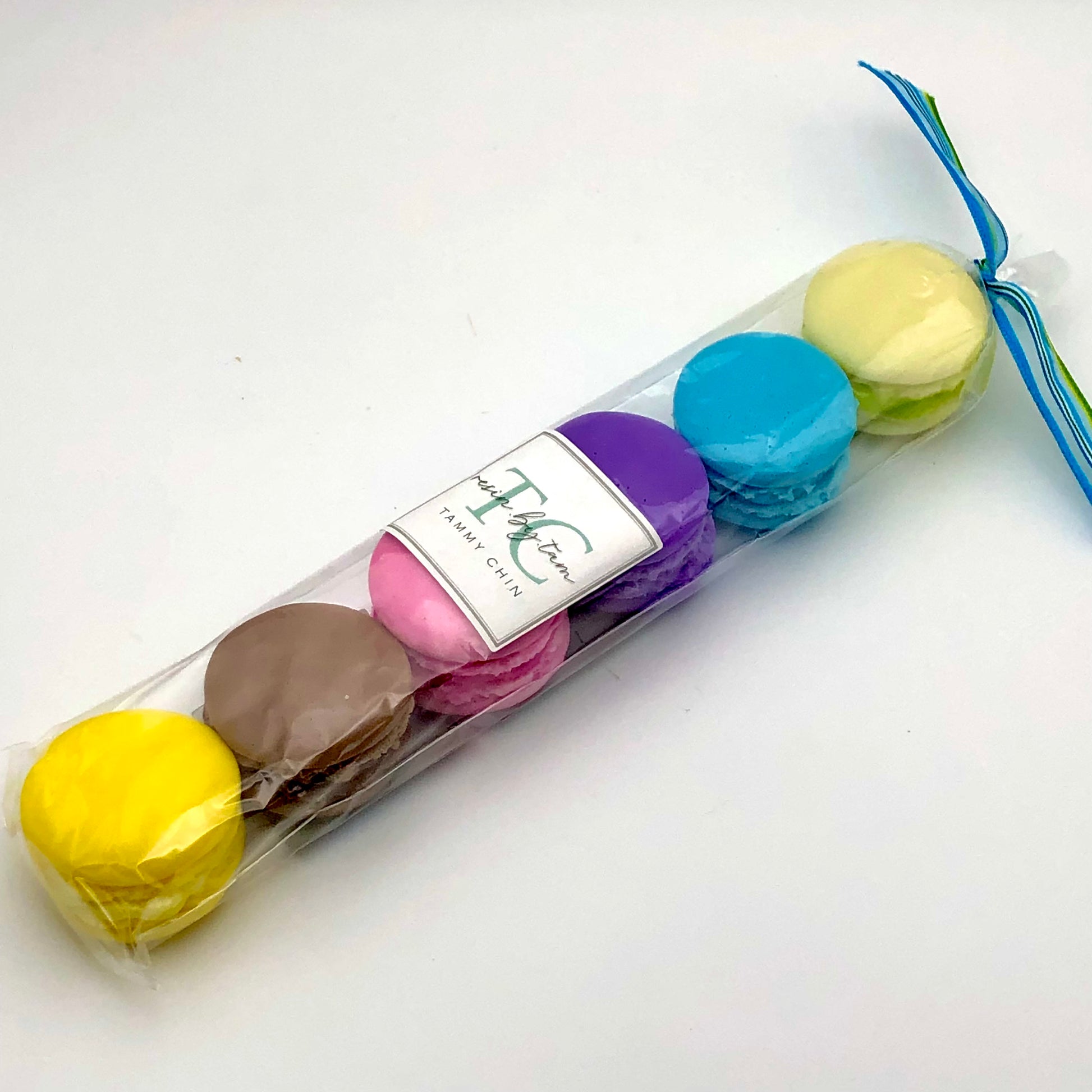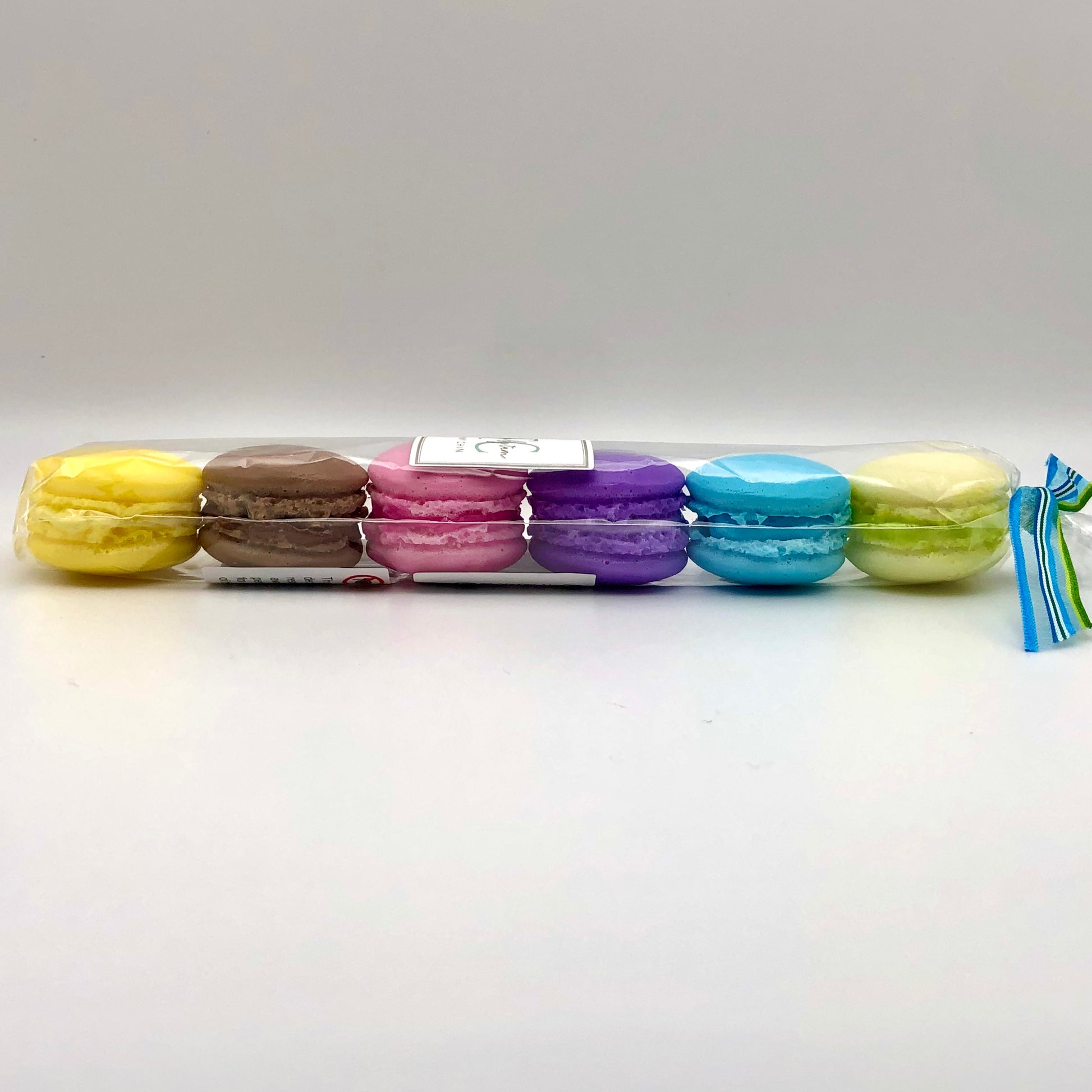 Set of 6 small macarons to please the amour in your life. You get 6 different colors, randomly selected.