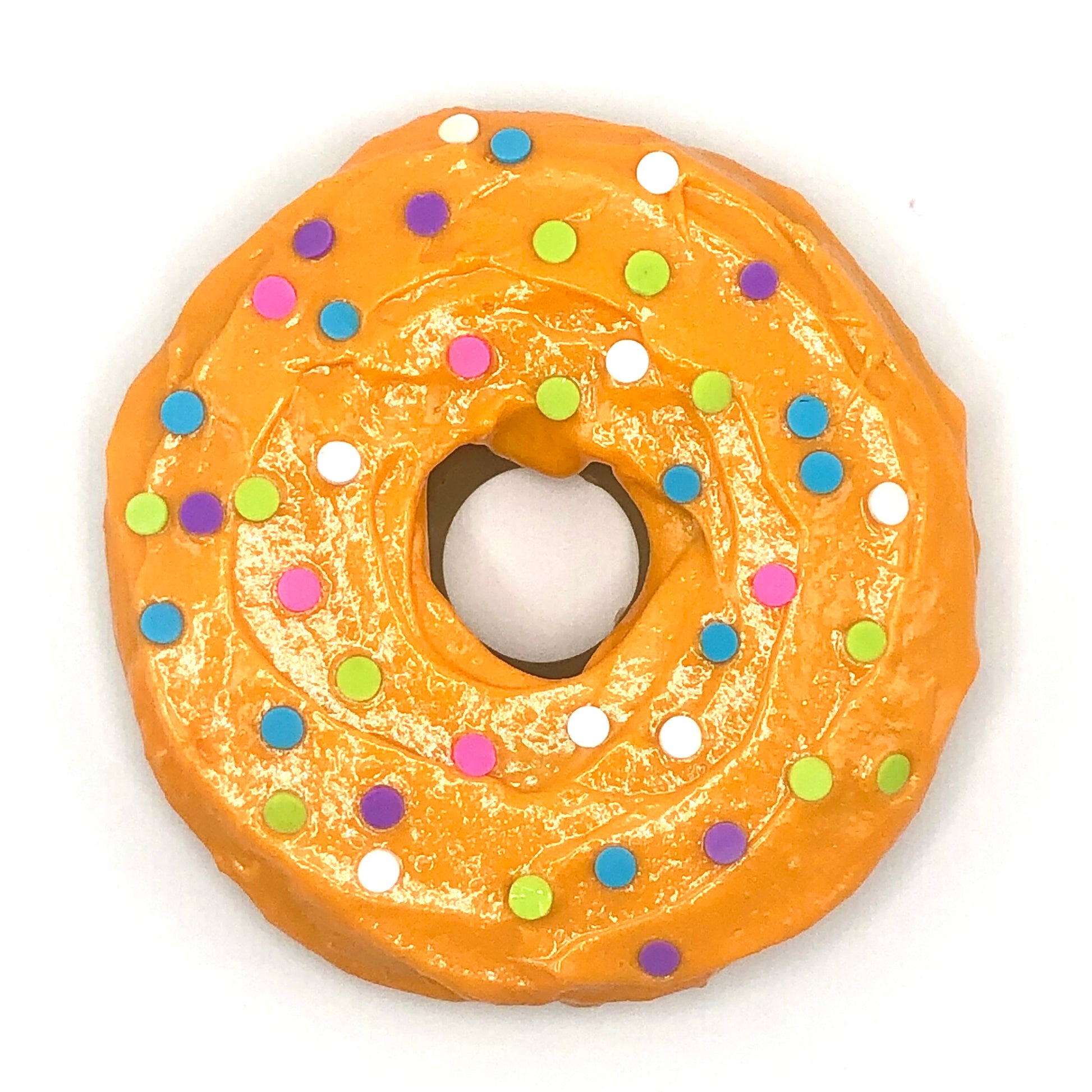 Each donut is sculpted and formed from epoxy resin and decorated with sprinkles made from polymer clay or glass beads. These are NOT edible. The donuts are handmade so each piece is one of a kind.