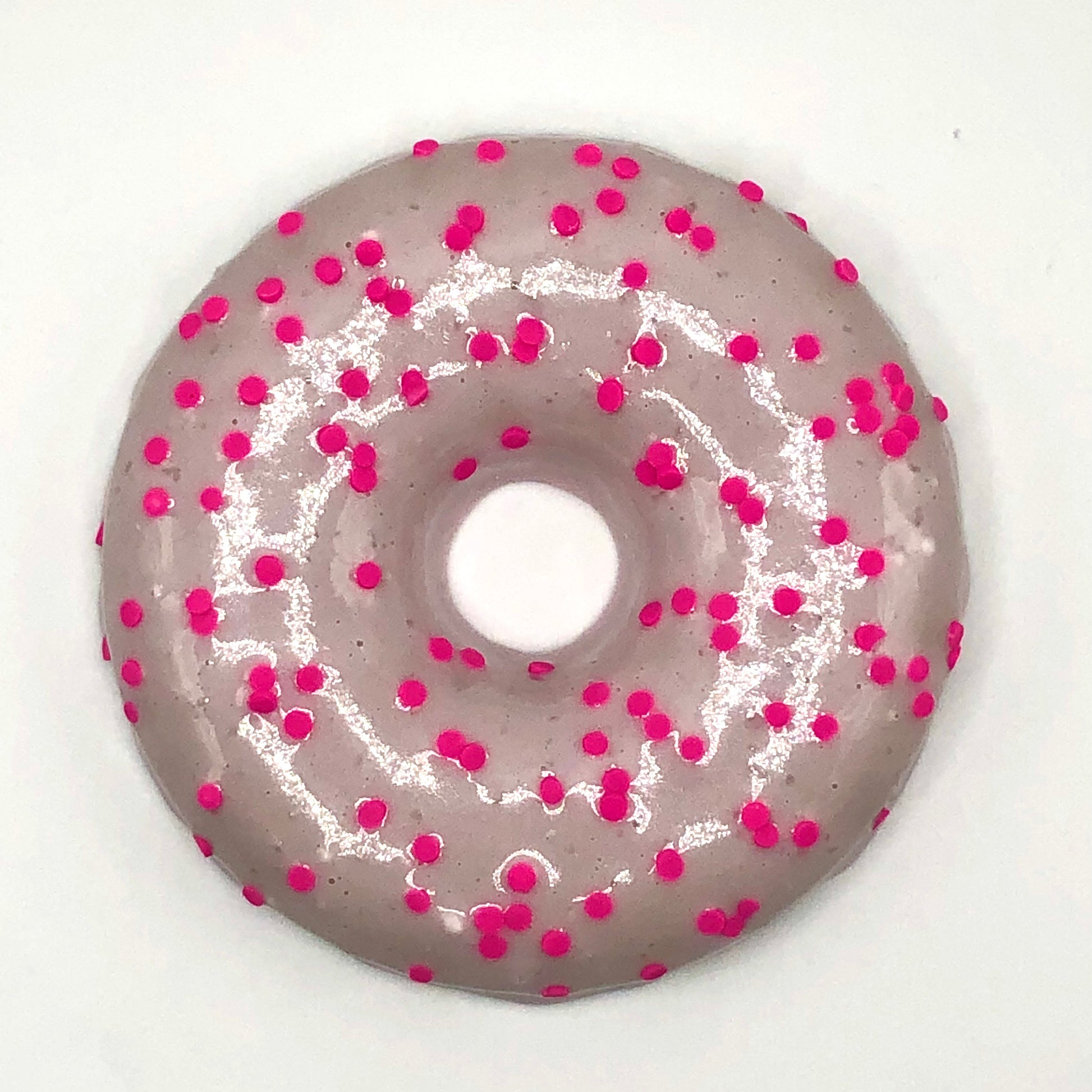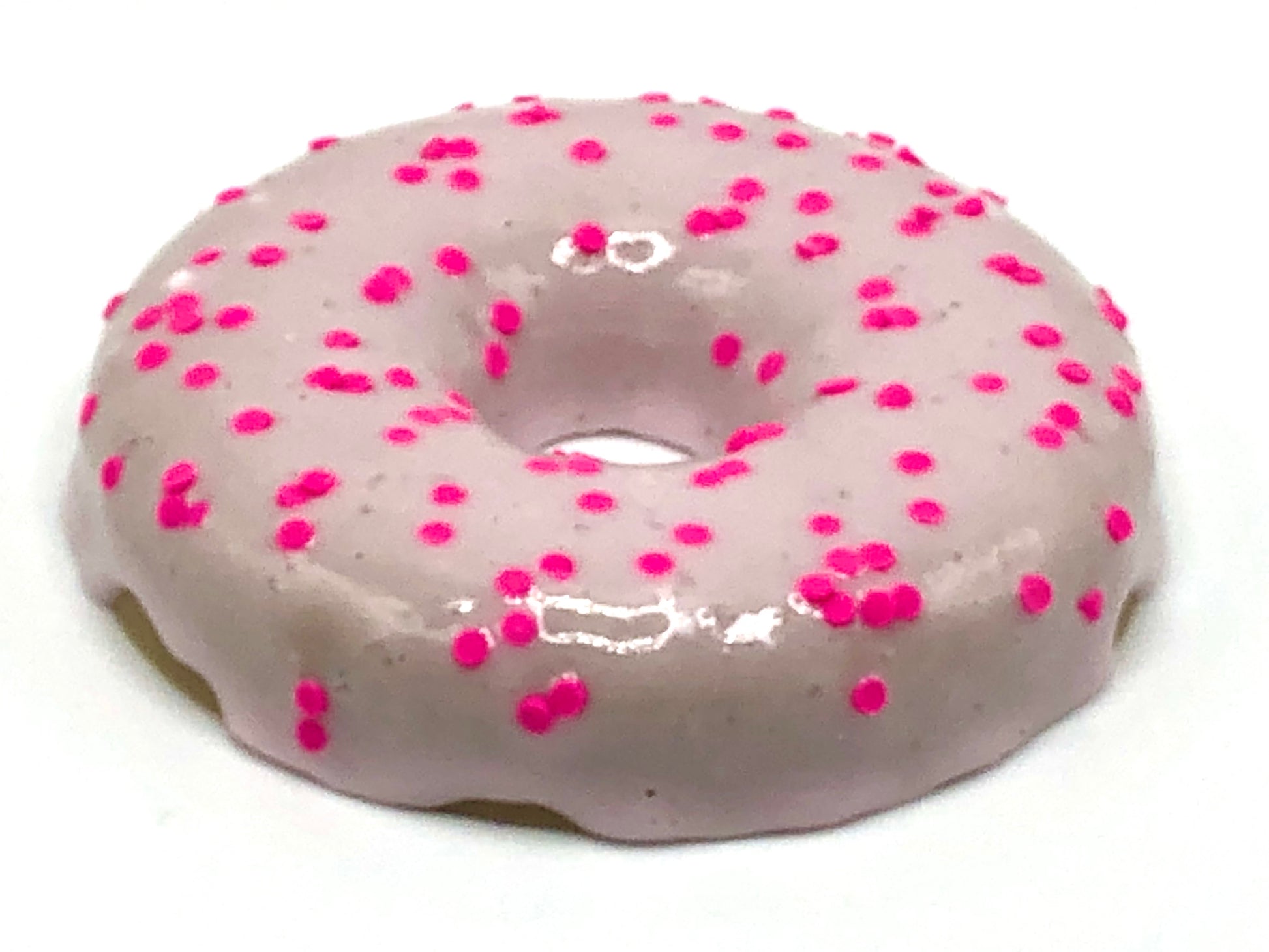 Each donut is sculpted and formed from epoxy resin and decorated with sprinkles made from polymer clay or glass beads. These are NOT edible. The donuts are handmade so each piece is one of a kind.