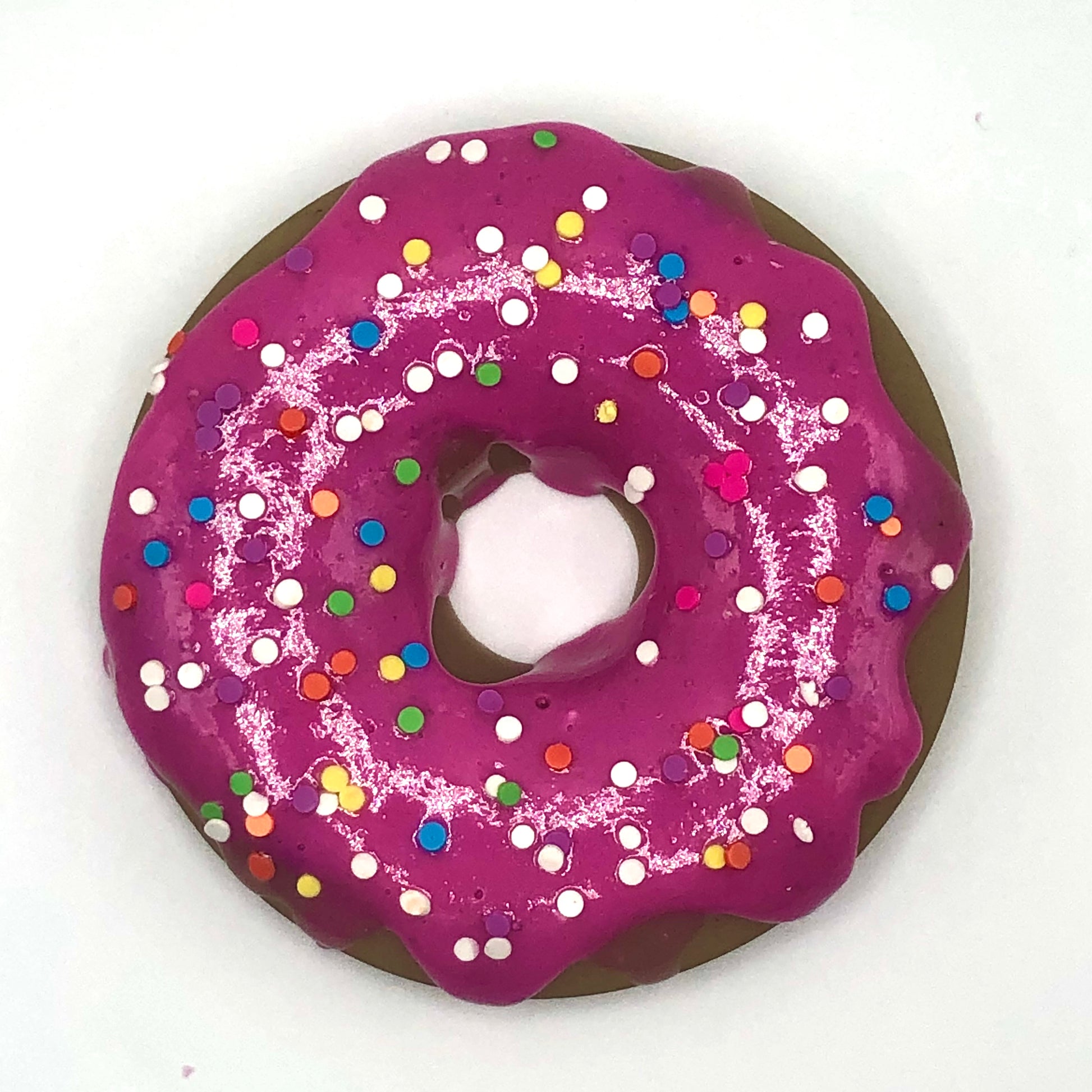 Each donut is sculpted and formed from epoxy resin and decorated with sprinkles made from polymer clay or glass beads. These are NOT edible. The donuts are handmade so each piece is one of a kind.