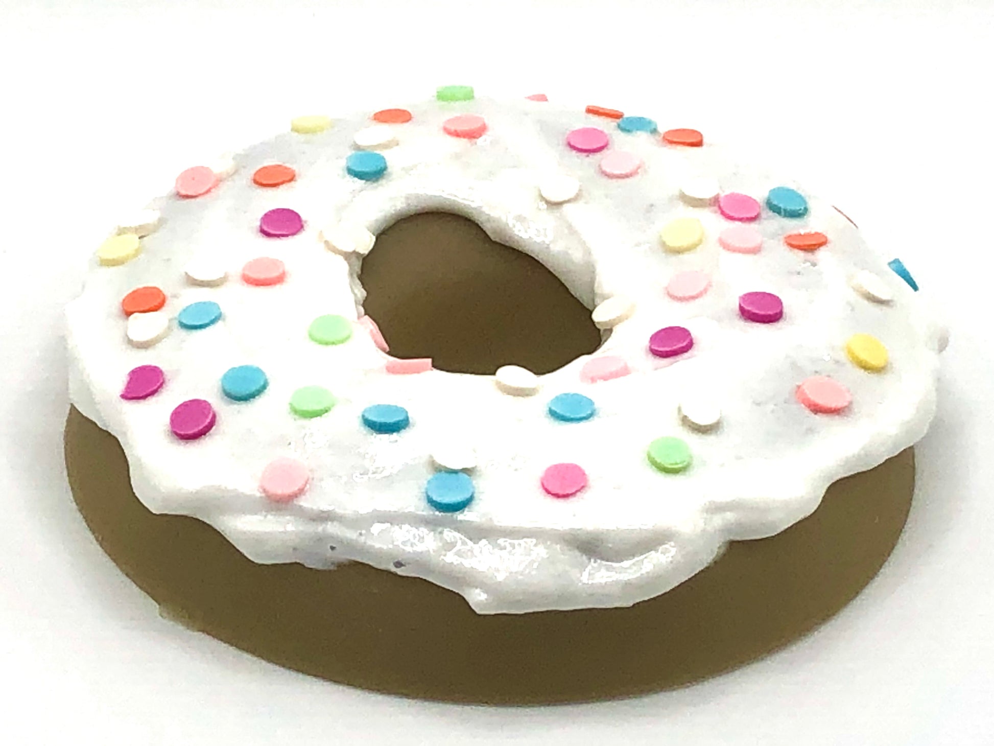Each donut is sculpted and formed from epoxy resin and decorated with sprinkles made from polymer clay or glass beads. These are NOT edible. The donuts are handmade so each piece is one of a kind.